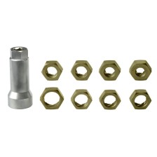 Juego de 8 tuercas roscadas con corte hexagonal de 32 mm en caja de plástico.