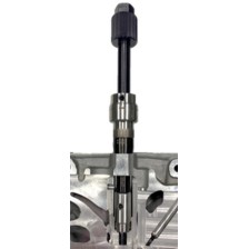 Dispositivo de soporte universal, por ejemplo, para montar y desmontar el puntal de suspensión en combinación con un gato de transmisión. El soporte o la fijación se realizan montando el dispositivo de soporte en el cubo de la rueda. La elevación y el descenso de la mangueta de dirección a la posición deseada se realiza mediante un gato de transmisión (no incluido en la entrega), lo que facilita enormemente el desmontaje y la instalación del puntal de suspensión. Diámetro interior: Ø 30 mm